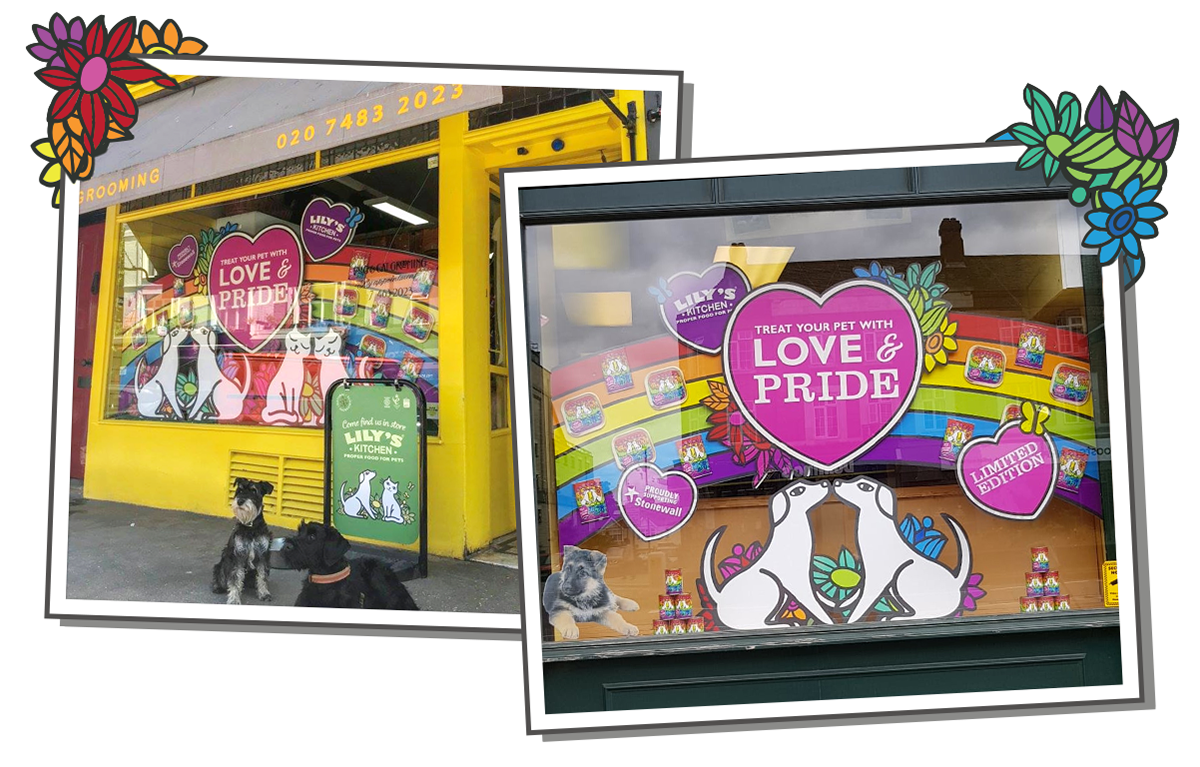 Shop front takeover designs included a kit of parts for different creatives to work over various window sizes and space restrictions.